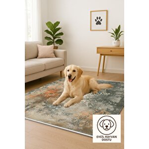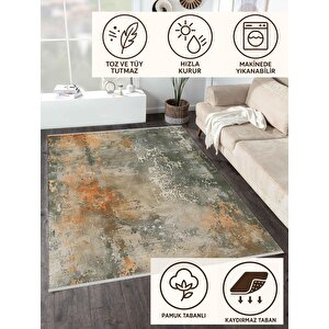 Lofy Halı Soyut Desenli Halı – Yeşil, Turuncu Ve Bej – Doğal Tonlarda Modern Geçişler, Makinede Yıkanabilir, Kaymaz Taban, Evcil Hayvan Dostu 150x300 cm