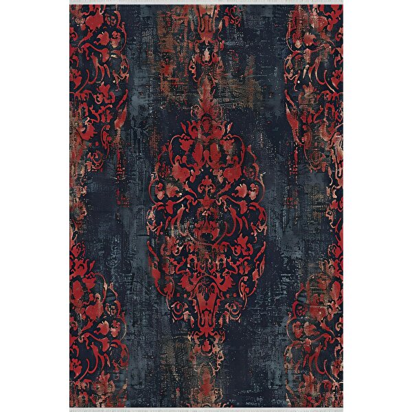 Lofy Halı Yıkanabilir Halı – Kırmızı; Lacivert; Bej – Damask Desen, Eskitilmiş Görünümlü Tasarım, Pamuk Dokuma Taban, Kolay Temizlenebilir, Toz Ve Tüy Tutmaz, Kaymaz, Evcil Hayvan Dostu 180x270 cm