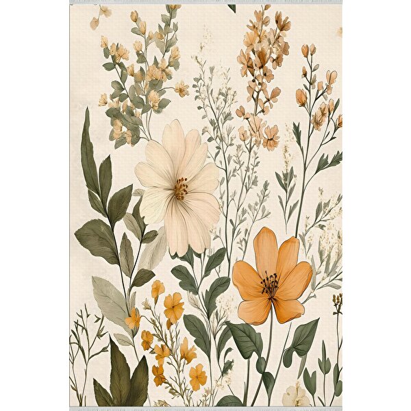 Lofy Halı Yıkanabilir Halı – Krem; Sarı; Yeşil – Çiçekli Desen, Pamuk Dokuma Taban, Makinede Yıkanabilir, Kolay Temizlenebilir, Toz Ve Tüy Tutmaz, Kaymaz, Evcil Hayvan Dostu 150x240 cm