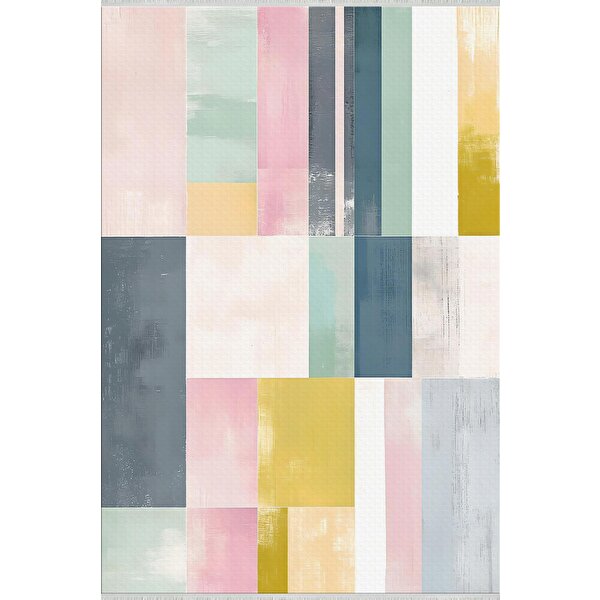 Lofy Halı Yıkanabilir Halı – Sarı; Pembe; Mint Yeşili; Lacivert – Geometrik Desen, Pamuk Dokuma Taban, Makinede Yıkanabilir, Kolay Temizlenebilir, Toz Ve Tüy Tutmaz, Kaymaz, Evcil Hayvan Dostu 200x270 cm