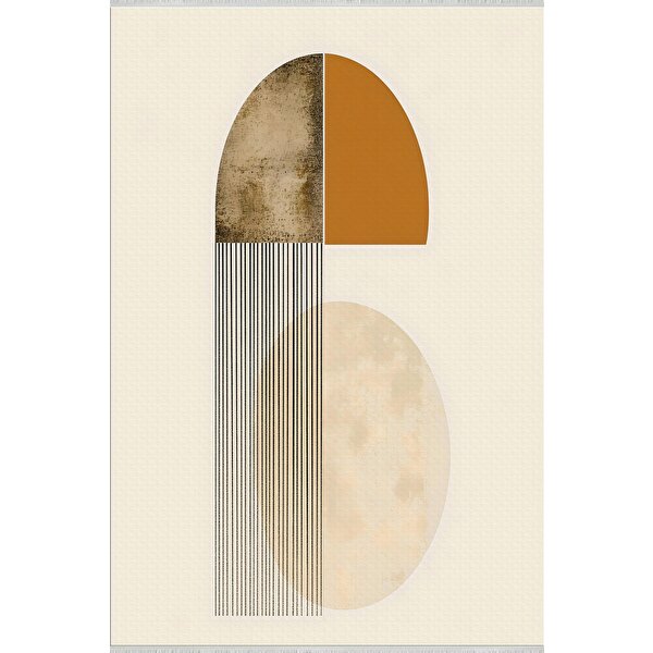 Lofy Halı Yıkanabilir Halı – Turuncu; Bej; Siyah – Geometrik Desen, Pamuk Dokuma Taban, Makinede Yıkanabilir, Kolay Temizlenebilir, Toz Ve Tüy Tutmaz, Kaymaz, Evcil Hayvan Dostu 200x350 cm