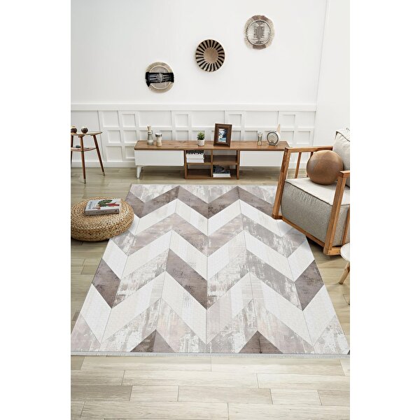 Lofy Halı Zikzak Halı – Bej, Krem Ve Kahverengi – Geometrik Chevron Deseni, Pamuk Dokuma Taban, Makinede Yıkanabilir, Kolay Temizlenebilir, Toz Ve Tüy Tutmaz, Kaymaz, Evcil Hayvan Dostu 120x270 cm