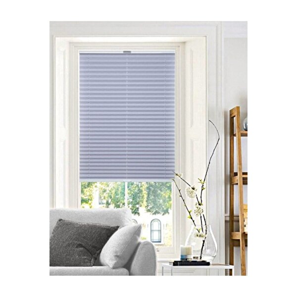 Açık Gri Plise Perde Katlanır Cam Balkon Perdesi - Ofis Perdesi - Mutfak Perdesi