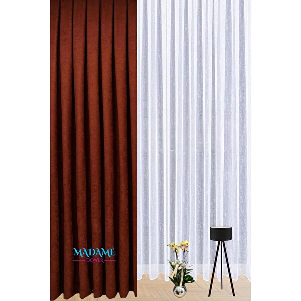 Madame Dower Butterfly Kiremit Soyut Sade Fon Perde - 1x2 Pileli - Sade Tasarım Fonluk Perde 130x290 cm