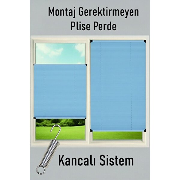 Madame Dower Kancalı Sistem Plisel Perde Mavi - Cam Balkon & Pimapen - Antibakteriyel Ve Toz Tutmaz Kumaş 70x200 cm