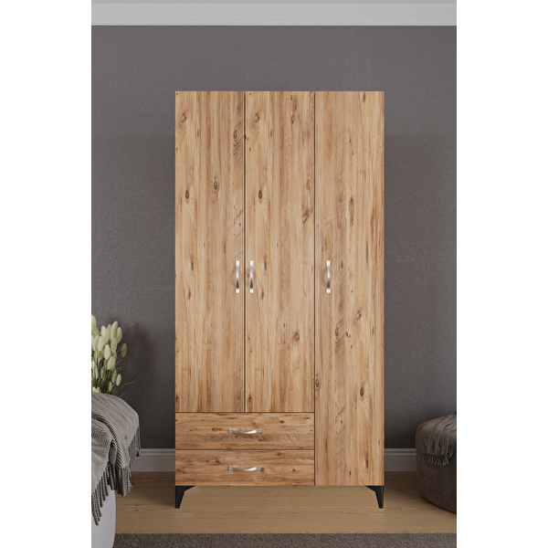 Mavera 3 Kapaklı 2 Çekmeceli Gardrop, Atlantik Çam, 90 Cm Atlantik Çam