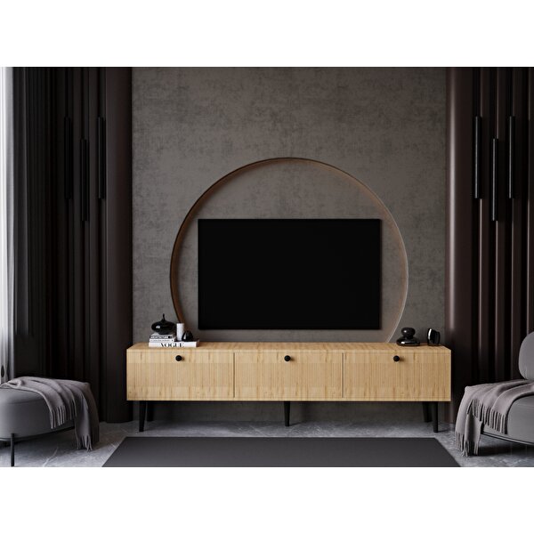 -Melura 200 TV Ünitesi – Sade ve Şık Bir Oturma Alanı İçin -Modern salonların vazgeçilmez parçası olmaya aday! -Melura 200 TV Ünitesi çizgili panel detayı, zarif ayak yapısı ve doğal tonlarıyla yaşam alanınıza hem estetik hem de işlevsel bir katkı sunar. TV’nizi konumlandırmakla kalmaz, düzeni de beraberinde getirir. -Ölçüler -Genişlik: 200 cm -Derinlik: 32 cm -Toplam Yükseklik: 49 cm -(Gövde: 30 cm + Ayak: 19 cm) -55 inç TV’ler için idealdir. -Neden Melura TV Ünitesi? -Modern çizgilerle zamansız tasarım -LINCO bağlantı sistemi ile kolay kurulum -%100 MDF gövde: Sağlam, estetik ve uzun ömürlü -Geri dönüştürülebilir, doğa dostu karton ambalaj -Avrupa standartlarında darbe dayanımlı güvenli paketleme -Yüksek ayaklar sayesinde kolay temizlik -Paket İçeriği -1 Adet Üç Kapaklı TV Ünitesi -Kurulum kılavuzu -Bağlantı aparatları ve vida seti -QR kod ile videolu kurulum desteği -Kullanım Alanları -Salonunuzda TV ünitesi olarak kullanım -Oturma odasında medya düzenleyici mobilya -Minimal yaşam alanlarında dekoratif depolama çözümü -Yatay raf üzerinde dekoratif obje, kitap, çerçeve ve çok daha fazlası için ideal -Notlar: -Ürün demonte olarak gönderilir. -Kurulumu tamamlanmış ya da orijinal ambalaj dışında gönderilen ürünlerde iade kabul edilmemektedir. -Görseldeki dekoratif objeler ürüne dahil değildir. -Ekran ayarlarına bağlı olarak renk tonlarında ufak farklılıklar görülebilir. -Oturma odanıza yepyeni bir hava katmak için Melura TV Ünitesi tam size göre!
