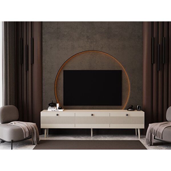 Melura Home Melura Tv Ünitesi - Tv Sehpası 200 Cm %100 Mdf Lake Ahşap Ayaklı Kumtaşı