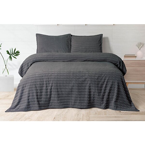 Merinos Modern Twıst 3 Parça Battaniye Seti 220x240cm Koyu Gri Koyugri