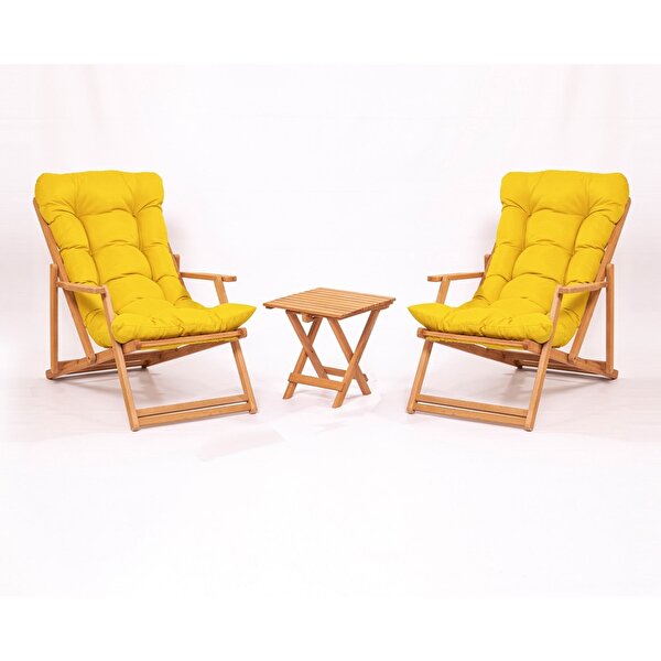 Simona Grand Şezlong 2+1 Ahşap Bahçe Balkon Teras Mobilyası Katlanır Set - Sarı Minder