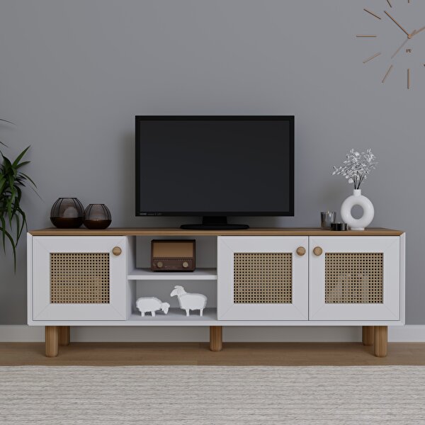 Midoser Bohem Serisi Garden Meşe - Beyaz Pvc Hasır Desen Tv Ünites
