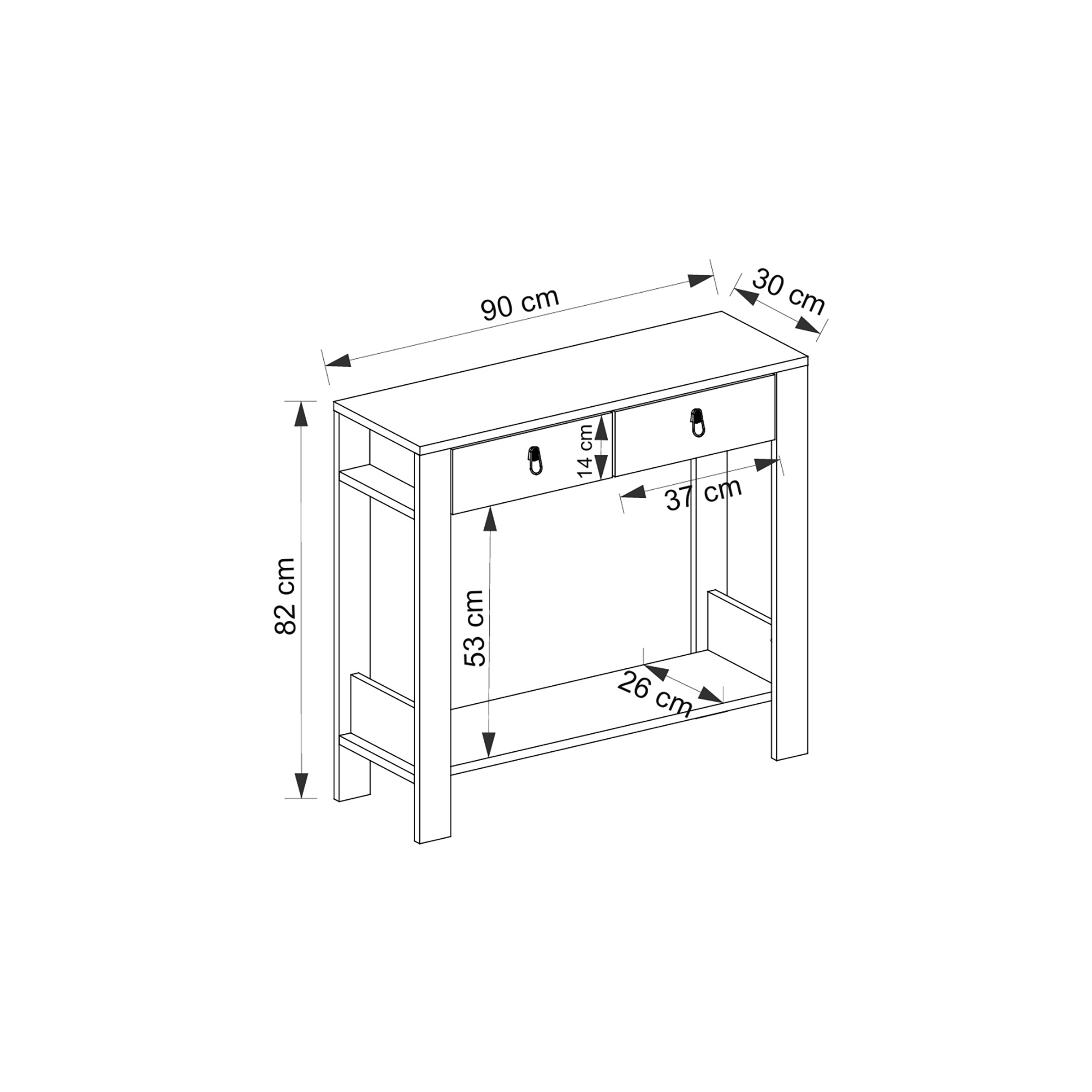 Sindy Çift Çekmeceli Dresuar , zarif çizgileri ve işlevsel yapısıyla giriş alanlarınıza hem şıklık hem de pratiklik kazandırır. Minimalist tasarımı sayesinde her dekorasyon stiline uyum sağlar. İki çekmecesi ile anahtar, cüzdan ve benzeri küçük eşyalarınızı düzenli bir şekilde saklarken; alt raf bölümü çanta, ayakkabı ya da dekoratif sepetler için ekstra alan sunar. Üst tabla ise aksesuar, çerçeve ve dekoratif objeler için geniş bir sergileme yüzeyi oluşturur. İki fonksiyonel çekmecesi sayesinde eşyalarınızı kolayca organize edebilirsiniz. Alt raf bölümü ile depolama kapasitesi artırılmıştır. Melamin kaplı yüzeyi dayanıklı, temizliği kolay ve uzun ömürlüdür. Şık gold kulplar modern bir detay sunar. Duvara sabitlenebilir yapıdadır, ekstra güvenlik sağlar. Ürün Ölçüleri: Genişlik: 90 cm Derinlik: 30 cm Yükseklik: 82 cm Çekmece Yüksekliği: 14 cm Alt raf yüksekliği: 26 cm