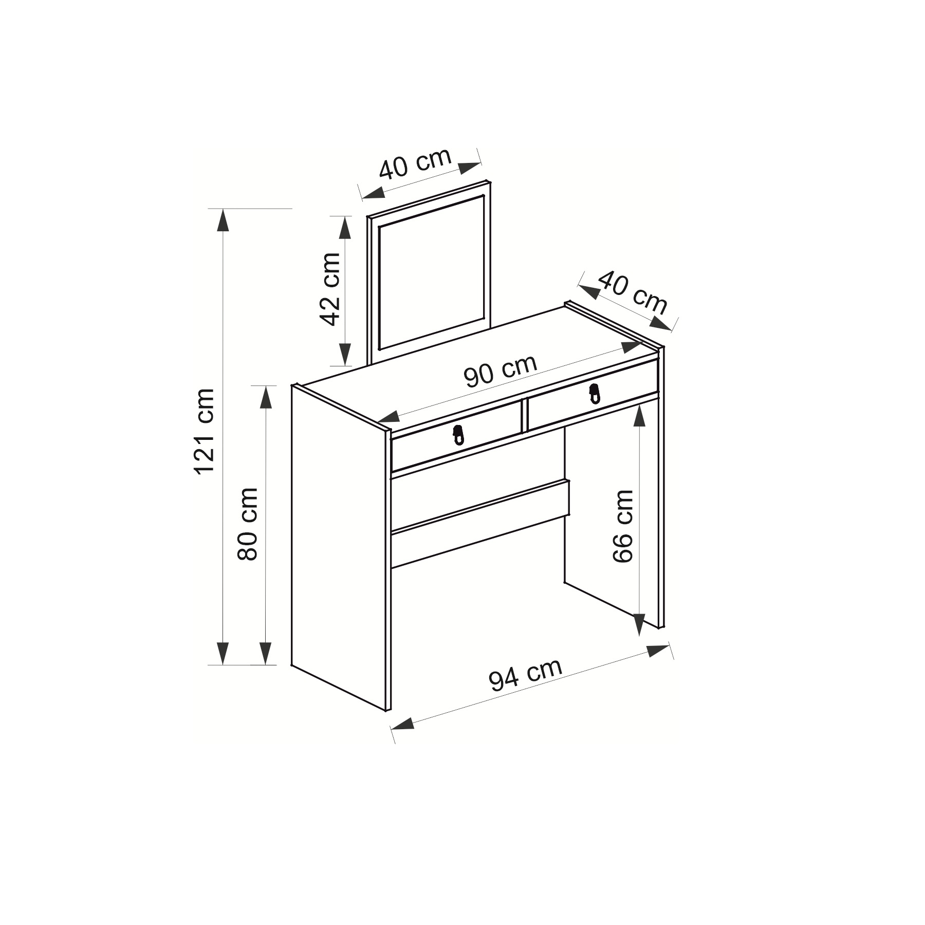 Günlük hazırlık rutininizi şıklık ve düzenle buluşturan Tuana Aynalı Çekmeceli Makyaj Masası, hem fonksiyonel hem estetik bir çözüm sunar. Makyaj yaparken dağınıklığa son vermek isteyenler için ideal bir seçimdir. Beyaz rengiyle modern yatak odalarına ve genç odalarına uyum sağlar. Ürün, 90 cm genişliğinde ayna yüzeyiyle ışığı yansıtarak ferah bir görünüm oluşturur. Üst yüzeyinde makyaj malzemelerinizi rahatça yerleştirebileceğiniz geniş alan bulunur. İki adet çekmece, kozmetik ürünlerinizi düzenli saklamanızı sağlar. Beyaz renk, sade ve temiz bir görünüm sunar. Yüksek kaliteli yonga levha malzemesi uzun ömürlü kullanım vadeder. Ayna dâhildir; ekstra ayna ihtiyacınızı ortadan kaldırır. Kullanım avantajları: Ergonomik yüksekliğiyle rahat oturma imkânı sunar. Temizliği kolaydır; hafif nemli bezle silinerek hijyen sağlanabilir. Ürün Ölçüleri: Genişlik: 94 cm Derinlik: 40 cm Yükseklik (toplam): 121 cm Ayna yüksekliği: 42 cm Masa yüksekliği: 80 cm Malzeme: 18 mm melamin kaplı yonga levha Renk: Beyaz Kurulum: Ürün demonte olarak gönderilir. Kurulum şeması ve bağlantı elemanları paket içeriğine dâhildir. Basit el aletleriyle kolayca monte edilebilir. Bilgilendirme: Sipariş sonrası ürün 2-5 iş günü içinde kargoya verilir. İade ve değişim için ürün ambalajının korunması önerilir. Hasarlı ürünlerde teslimat anında tutanak tutulmalıdır. Sepetinize ekleyin, her sabah keyifle hazırlanın!