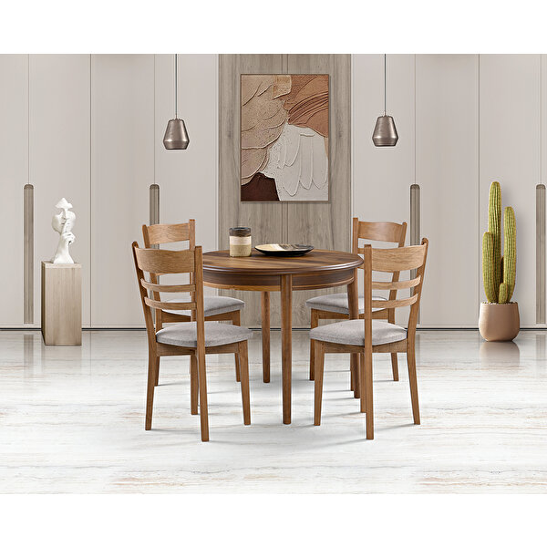 Mobilya Dükkanım Luna Ceviz Yuvarlak Masa & Tepeli Sandalye Takımı Hdr1278 - Md