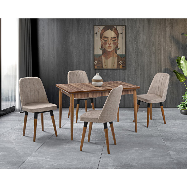 Mobilya Dükkanım Mix Ceviz Masa & Dolunay Ceviz Sandalye Takımı Hdr1259 - Md