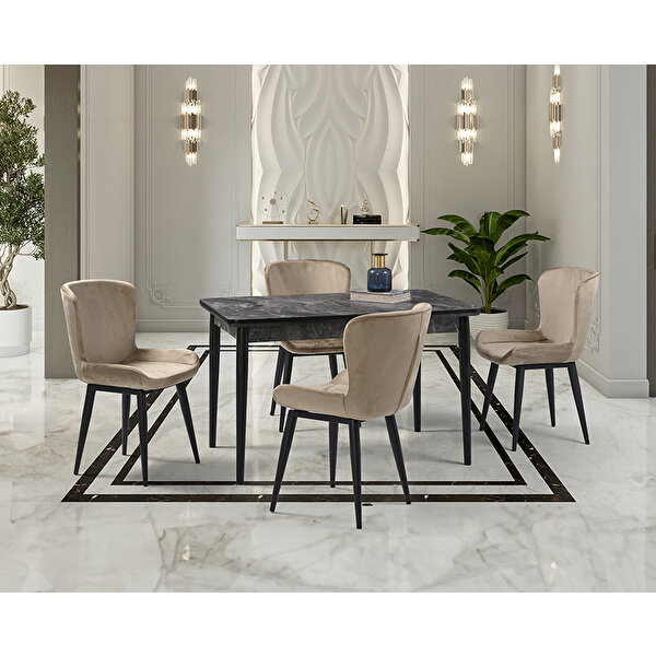 Mobilya Dükkanım Mix Siyah Mermer Masa & Kuğu Sandalye Takımı Hdr1258 - Md