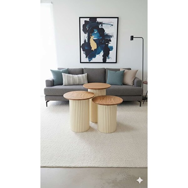 Mobilya Stant Most Trio Bohem 3'lü Açık Kahve-bej Zigon Sehpa(evinize Teslim) Açık Kahverengi - Bej