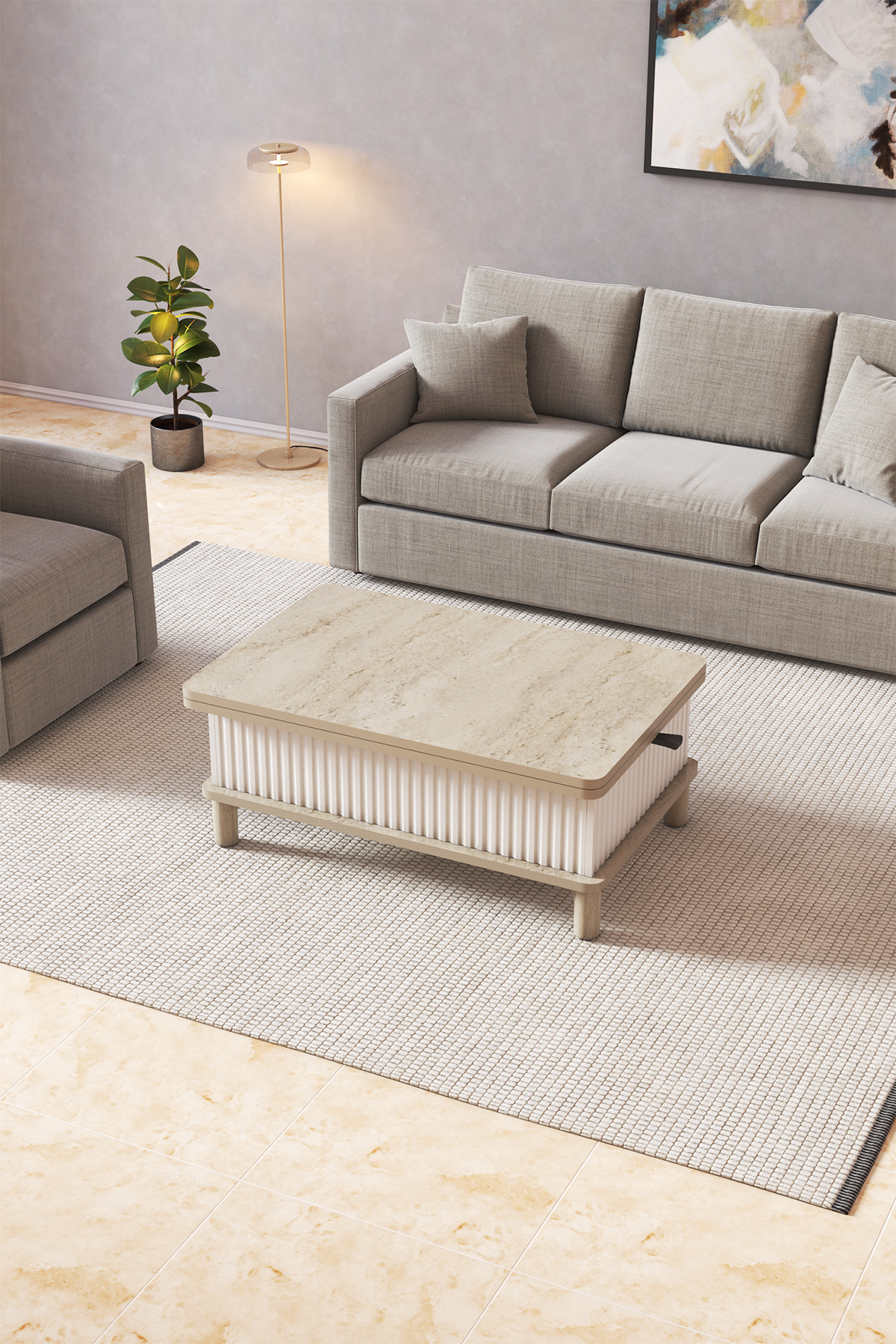 Mobpazar Bohem Akıllı Sehpa, Açılır Yemek Masası, Orta Sehpa, Ayaklı Traverten