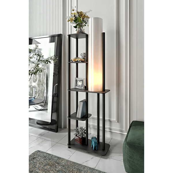 Messer Dekoratif Raflı Lambader Demonte olarak sevk edilir; ; Messer Raflı Lambader Avrupa Birliği Standartlarında 1. Sınıf Yonga Levha kullanılarak üretilmiş olup, E1 Normları Dahilinde Kanserojen; Madde İçermez.; ; Raflı Lambader Profilleri 1. Sınıf Mdf’den Üretilmiştir.; ; Raflı Lambader Kenarları Pvc Bant ile Kaplıdır.; ; Ürünün Kuruluş Şeması Ambalaj İçerisindedir.; ; Allen Anahtar Sayesinde Kolay Kurulum Sağlanır.; ; Duy Tipi: E 27 Max 20 W Tasarruflu veya Led Ampul ile Kullanımı Uygundur.; ; Kablo Kesiti 2*0.50 Olup 2.00 Mt Uzunlukta ve Açma ve Kapama Anahtarlıdır.; ; Abajur Malzemesi: 350 Mikron Pvc Folyo'dur.; ; TEKNİK ÖLÇÜLER Genişlik: 45 cm; ; Derinlik: 25 cm; ; Yükseklik: 120 cm; ; Raf Aralığı: 20 cm; ;