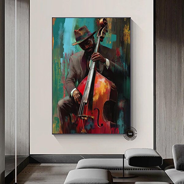 Modern tablo Afrika Caz Sanatı, Renkli Caz Grubu Ile Afro-amerikan Müzisyen Kanvası 120x180 cm