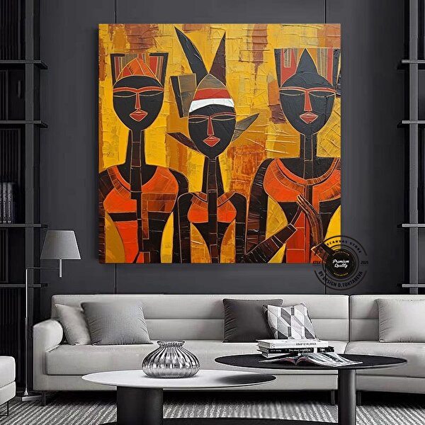 Modern tablo Afrika Duvar Sembolleri – Lüks Kültürel Kanvas Tablo 100x100 cm