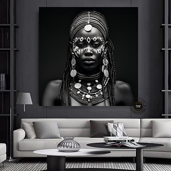 Modern tablo Afrikalı Kadın Portresi Kanvas; Afrika Kültürü Duvar Sanatı 60x60 cm