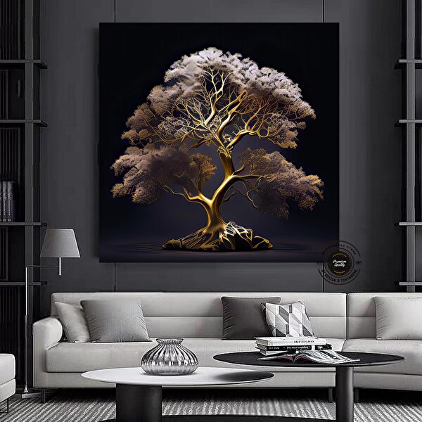 Modern tablo Altın Ağaç Kanvas Tablo; Lüks Oturma Odası 80x80 cm