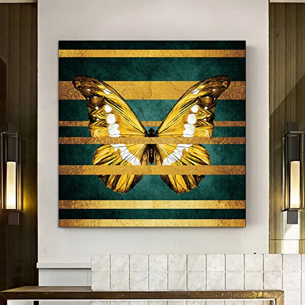 Modern tablo Altın Kelebek Kanvas Tablosu; Kelebek Ev Dekoru; Sarı Kelebek Sanatı; Altın Kelebek Ev Dekoru 80x80 cm