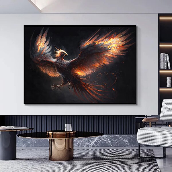 Modern tablo Anka Kuşu Kanvas Baskıları; Ejderha Kanvas Tablosu; Kırmızı Anka 90x180 cm