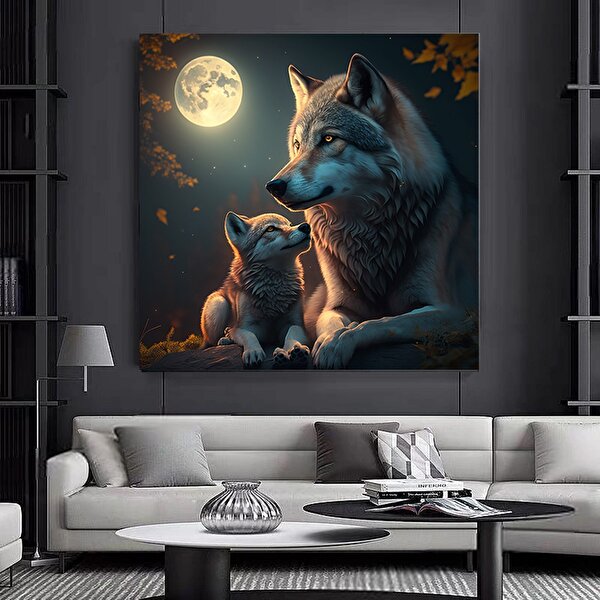 Modern tablo Ay Işığında Kurtlar Kanvas Tablo | Modern Ev Dekoru 30x30 cm