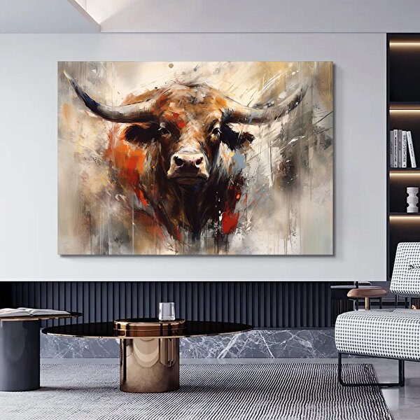 Modern tablo Boğa Kanvas Tablosu, Renkli Boğa, Dağ İneği, Soyut Hayvan Sanatı 90x180 cm