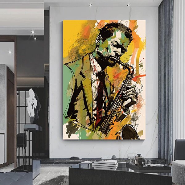 Modern tablo Caz Aşk Kanvas; Saksafoncu Portresi 20x30 cm