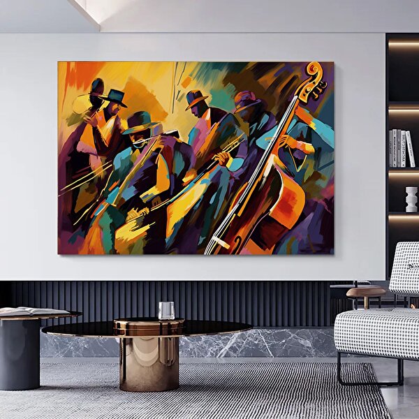 Modern tablo Caz Kulübü, Gece Ve Müzik, Konser, Orkestra, Caz Duvar Dekoru, Kanvas Baskı 90x180 cm