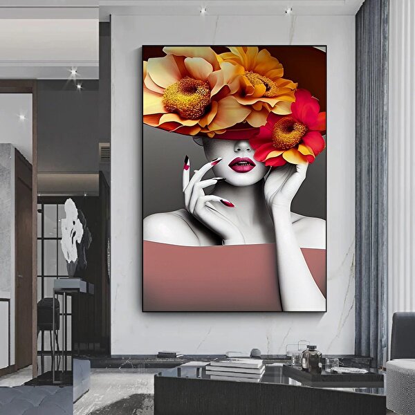 Modern tablo Çiçekli Kadın Duvar Sanatı; Gül Başlı Kadın; Moda Kadın; Çiçekli Baş Posteri; Çiçek Kadın Kanvas; As 80x120 cm