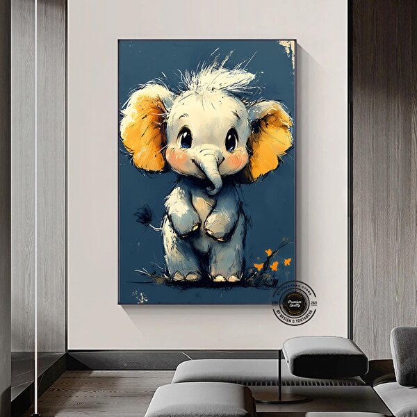 Modern tablo Fil Yavrusu Duvar Sanatı, Çocuk Odası Dekoru, Sevimli Hayvan Temalı Kanvas 30x40 cm