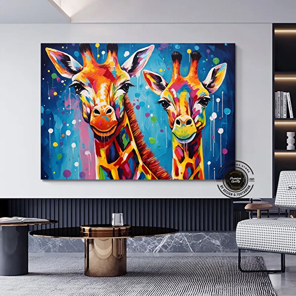 Modern tablo Graffiti Kanvas; Zürafa Kanvas; Renkli Hayvan Sanatı 90x180 cm