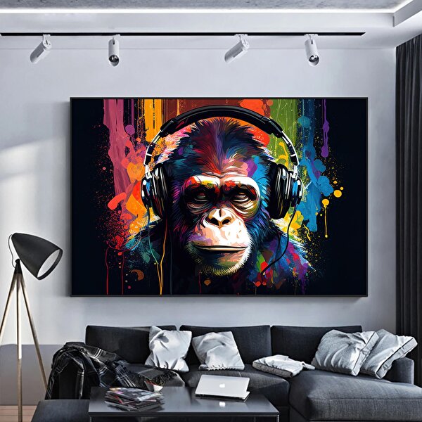 Modern tablo Graffiti Maymun Sanatı, Renkli Mizahi Gorilla Kanvas Tablo 90x180 cm