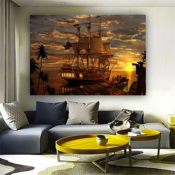 Modern tablo Günbatımı Yelkenli Kanvas; Ev Ve Ofis Dekoru 90x180 cm