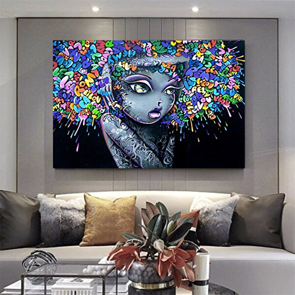 Modern tablo Güzel Kızlar Graffiti Kanvas Tablosu, Sokak Sanatı Baskısı, Oturma Odası Duvar Dekoru 60x90 cm