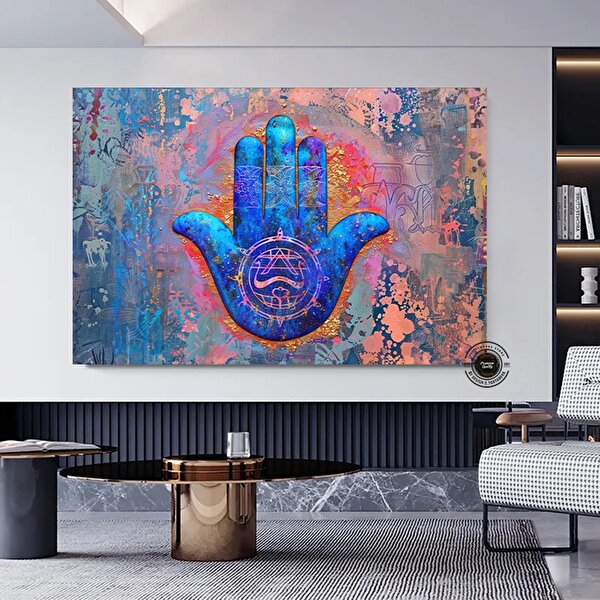 Modern tablo Hamsa Spiritüel Sanat Çok Renkli Kanvas; Hamsa Eli; Hamsa El Baskısı; Fatima Eli; Hamsa Duvar Sanatı; 60x120 cm