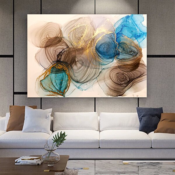 Modern tablo Kahverengi Ve Altın-mavi Mermer – Alkol Mürekkebi Duvar Dekoru, Modern Soyut Kanvas 120x180 cm
