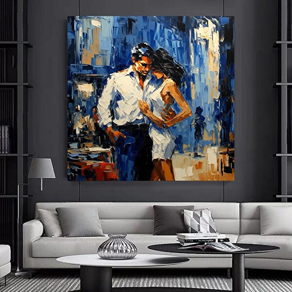 Modern tablo Kanvas Ev Dekoru; Dans Eden Çift Yağlı Boya Baskısı 100x100 cm