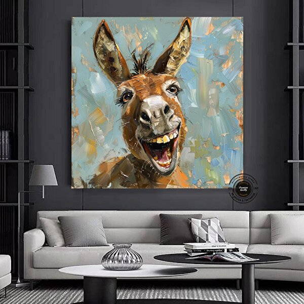 Modern tablo Komik Eşek Tablosu; Gülümseyen Eşek Duvar Asması; Renkli Eşek Kanvas Baskısı – Eğlenceli Ve Canlı Ha 30x30 cm