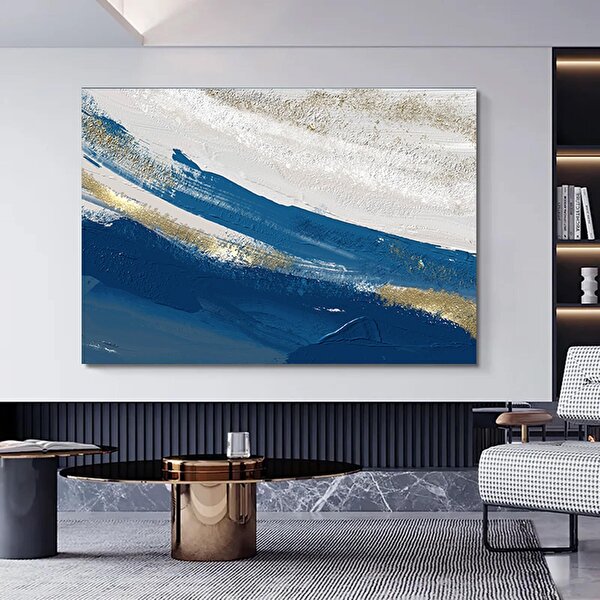 Modern tablo Lüks Mermer Duvar Dekoru; Lacivert Sanat; Soyut Mermer Kanvas 90x180 cm