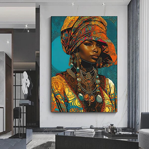 Modern tablo Modern Afrika Kadın Tablo Poster Ev Dekoru, Oturma Odası İçin, Kanvas Üzerine Afrika Kadın Baskısı 70x100 cm