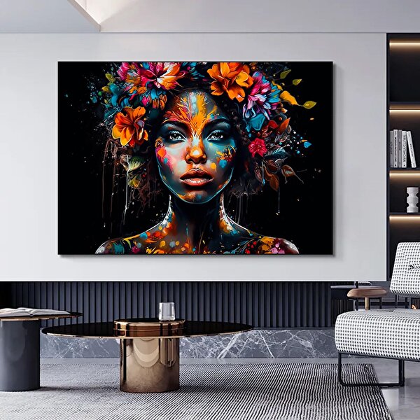 Modern tablo Modern Afro-amerikan Kadın Graffiti Duvar Sanatı 150x250 cm
