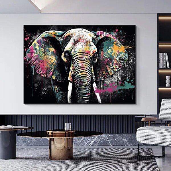 Modern tablo Modern Graffiti Fil; Duvar Sanatı Dekoru; Fil Kanvas Tablosu; Ofis Hediyesi 70x100 cm