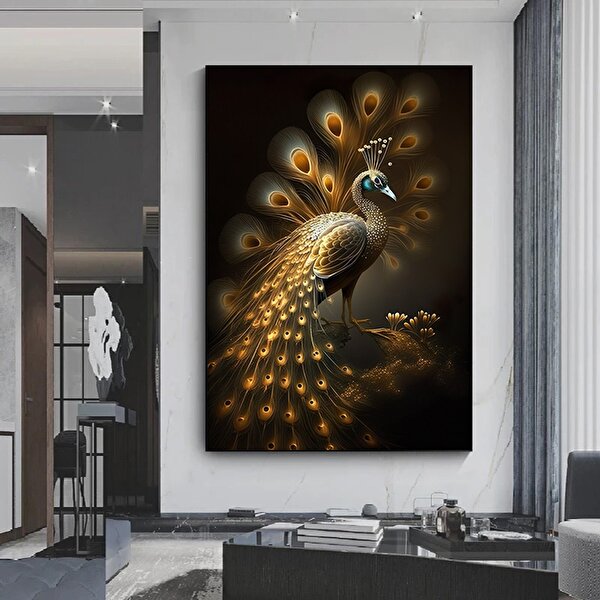 Modern tablo Modern Sanat Tavuskuşu – Lüks Dijital Baskı Sanatı; Tavuskuşu Kanvas Tablosu 100x150 cm