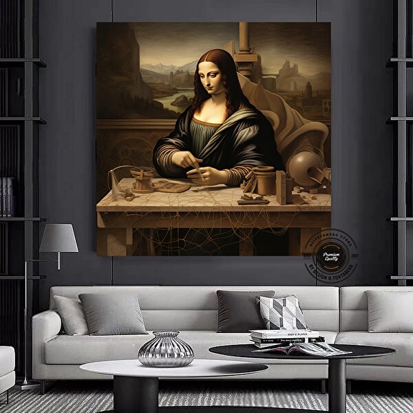 Modern tablo Mona Lisa Reprodüksiyon Kanvas, Mona Lisa Duvar Sanatı, Leonardo Da Vinci Reprodüksiyon Baskı 60x60 cm