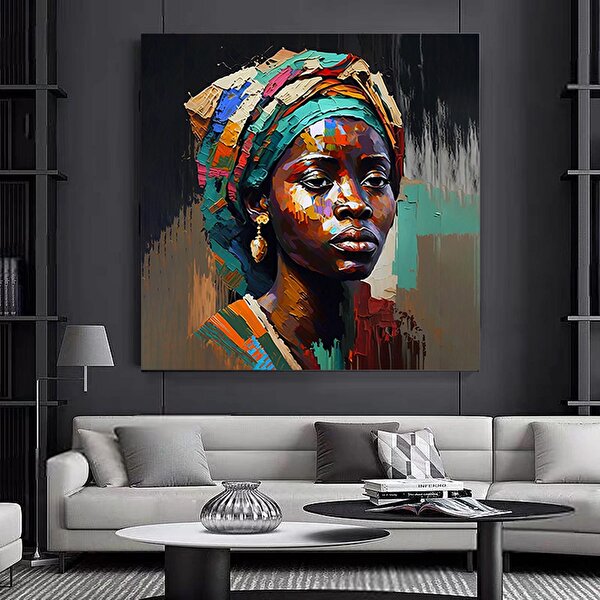 Modern tablo Renkli Afrikalı Kadın Kanvası, Afro-amerikan Sanat, Modern Sanat Baskısı, Moda Dekoru 30x30 cm